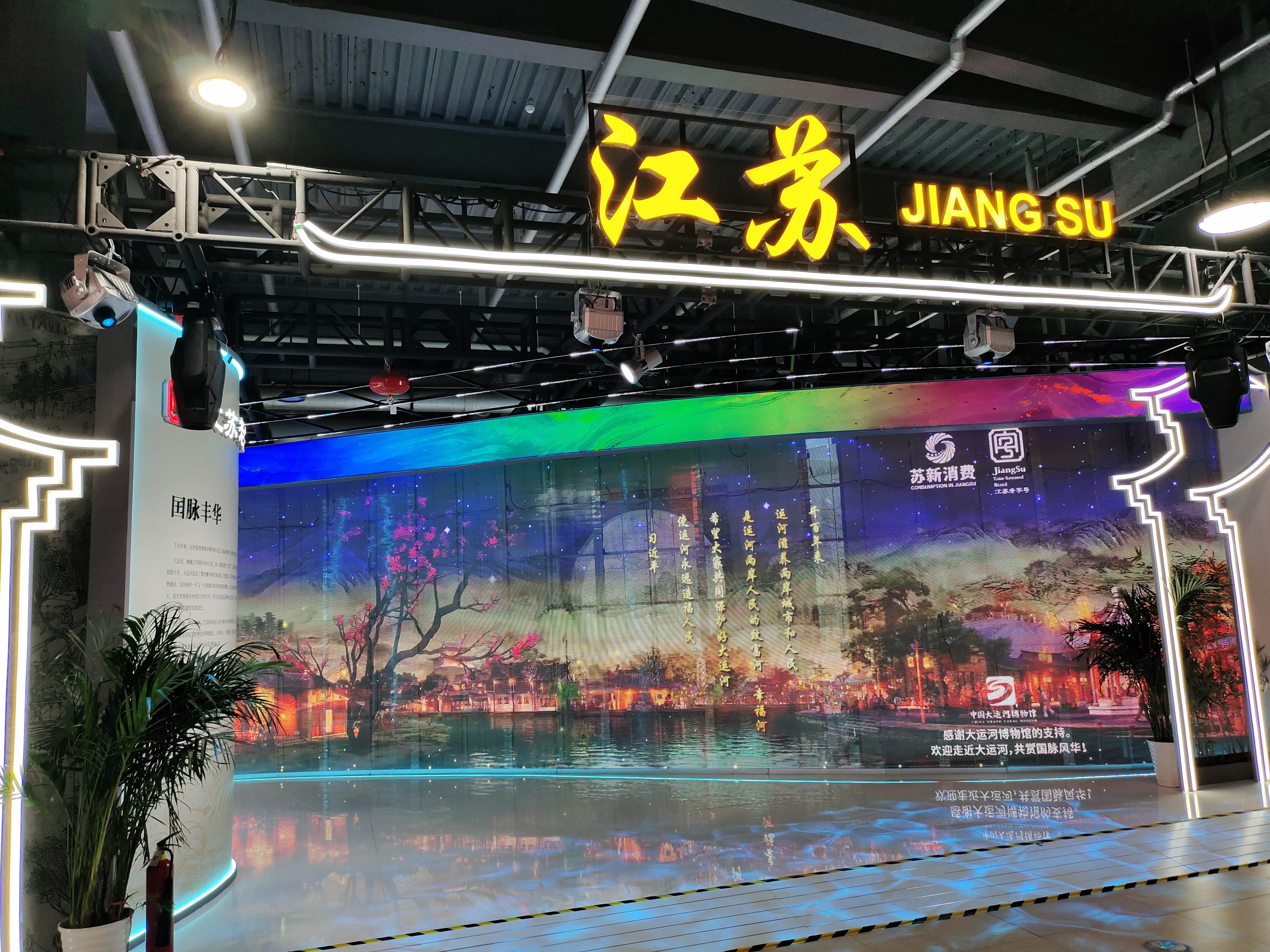 運(yùn)河通達(dá),商賈流轉(zhuǎn)云集;古往今來,老字號(hào)各領(lǐng)風(fēng)騷。在本次進(jìn)博會(huì)人文交流活動(dòng)中,江蘇交易團(tuán)以江蘇運(yùn)河商貿(mào)文化為主線,呈現(xiàn)“國(guó)脈豐華蘇新消費(fèi)”的主題。相關(guān)展示以時(shí)間為軸穿越古今商貿(mào)變遷,以空間為序溯源運(yùn)河南下,以產(chǎn)品為面領(lǐng)略老字號(hào)風(fēng)采,搭建“楚風(fēng)漢韻、余味淮揚(yáng)、金陵風(fēng)雅、吳風(fēng)流長(zhǎng)”四大板塊,帶領(lǐng)觀眾漫步在運(yùn)河邊,移步換景,河為線、城為珠、線串珠、珠帶面,突出城河共生、商貿(mào)繁榮的特征。